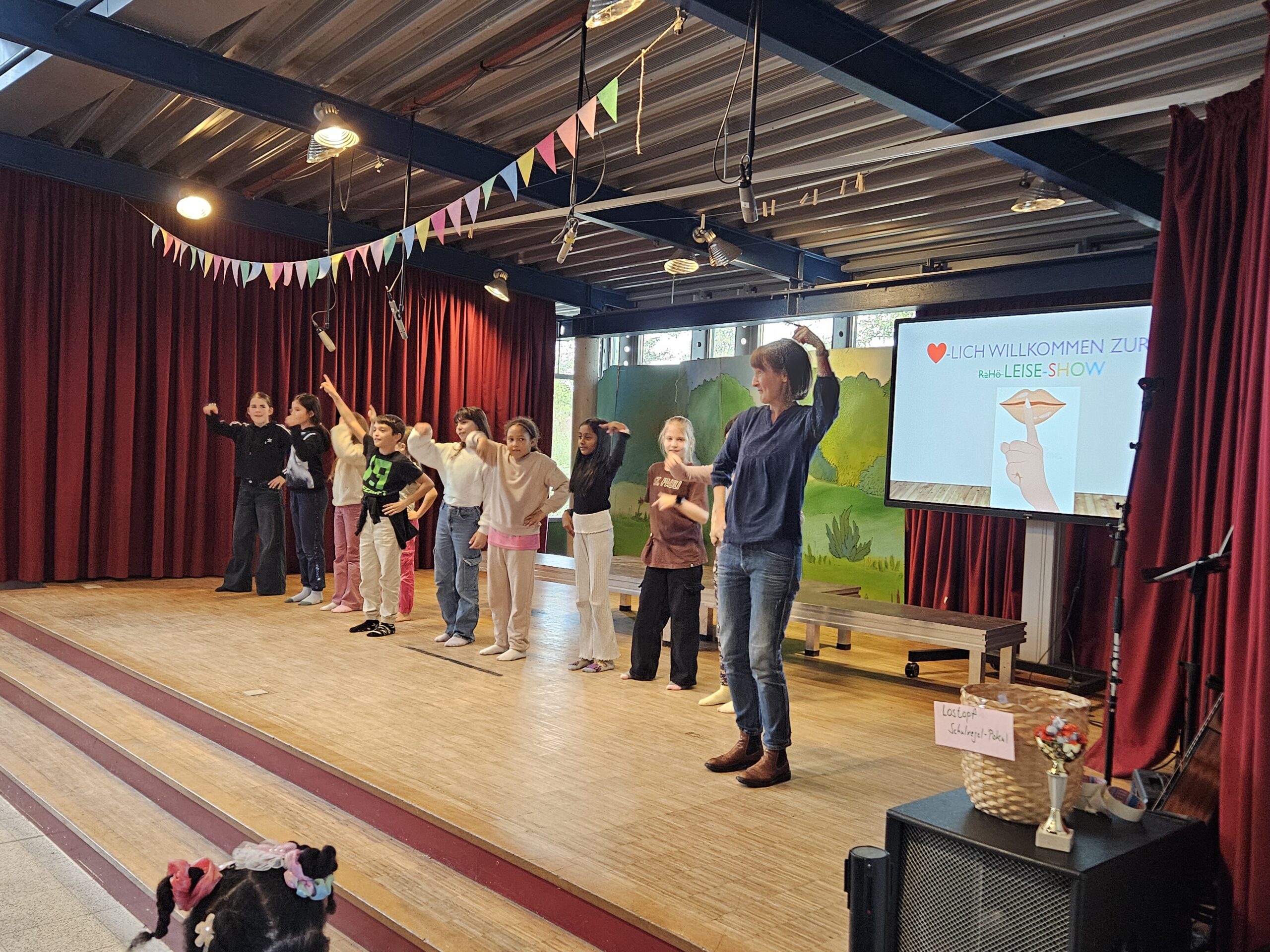 Am Montag traf sich die ganze Schule zur ersten RaHö-Show des Schuljahres – diesmal unter dem besonderen Motto „Leise-Show“. Und tatsächlich: Die vielen kleinen Maßnahmen, die wir im Vorfeld ausprobiert hatten, haben wunderbar gewirkt! Die meisten Kinder waren ruhig und aufmerksam, sodass alle Beiträge bestens zur Geltung kamen.